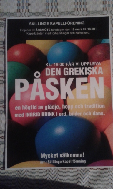 Torsdagen den 19 mars höll jag ett föredrag i Skillinge Kapell om den grekiska påsktraditionen.